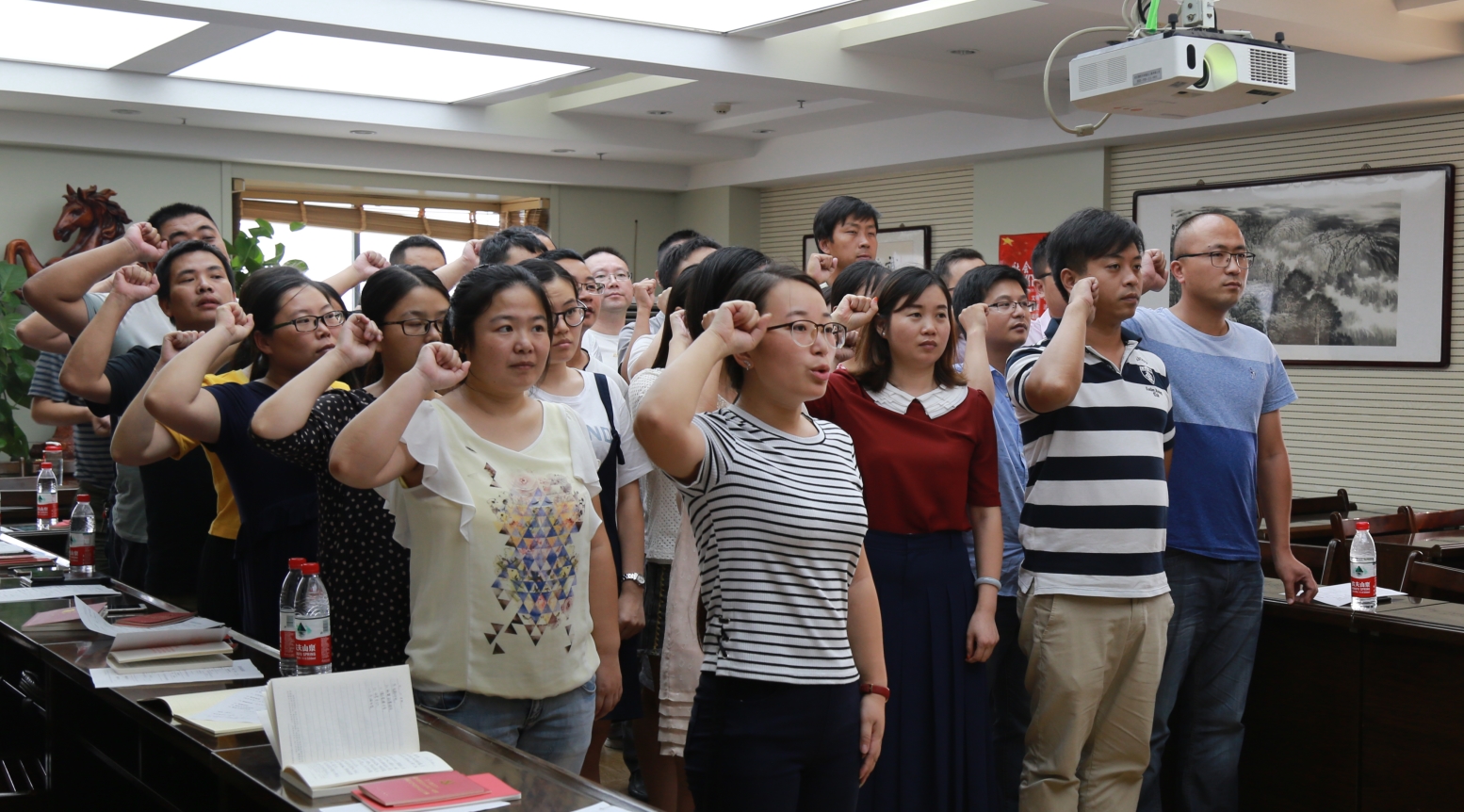 為迎接黨的十九大順利召開,815日,漢陽市政三公司八月支部主題黨日活動在公司會議室拉開帷幕,活動以“學習‘7.26習近平總書記重要講話精神,迎接黨的十九大”為主題,全體黨員齊唱國歌、重溫入黨誓詞、看黨章讀黨規、學系列講話······活動環節豐富,內容充實。